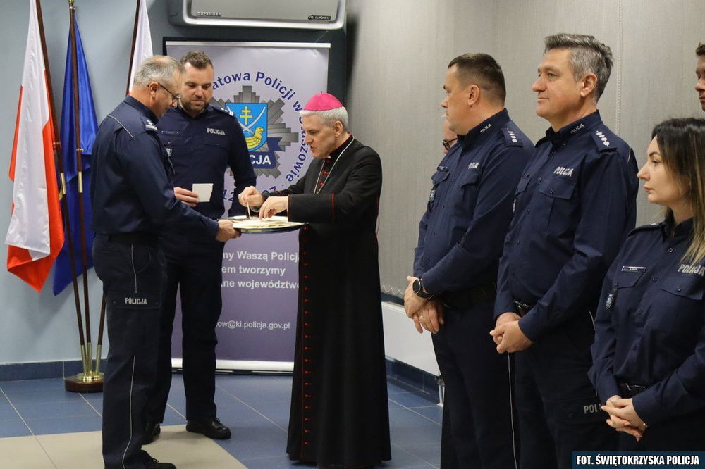 W Sali odpraw Komendy Powiatowej Policji w Staszowie odbyło się opłatkowe spotkanie funkcjonariuszy i pracowników cywilnych. Komendant mł.insp. Dariusz Kuroś podziękował za służbę i złożył świąteczne życzenia, uroczystość uświetnił biskup.